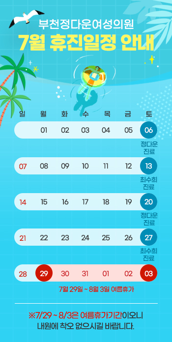 부천정다운여성의원 7월 휴진일정
